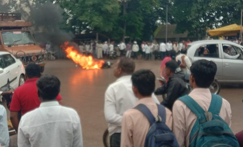 संतप्त जमावाने छेड काढणाऱ्यांची दुचाकी पेटवली