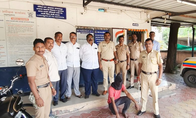 या आधारे सहाय्यक पोलीस निरीक्षक आशिष शेळके यांच्या नेतृत्वाखालील पोलीस पथकाने तत्काळ घटनास्थळी जाऊन सापळा रचला आणि आरोपींना अटक केली. तपासात आरोपींची नावे सुनील दत्तात्रय चाफे आणि विशाल मुळे, दोघेही रा. जळके (खुर्द) असे असल्याचे समोर आले. त्यांच्याकडून १०,००० रुपये किंमतीची इलेक्ट्रिक मोटार आणि ३०,००० रुपये किंमतीची दुचाकी (एमएच २० एडब्ल्यू ३१६०) असा एकूण ४०,००० रुपयांचा मुद्देमाल जप्त करण्यात आला.