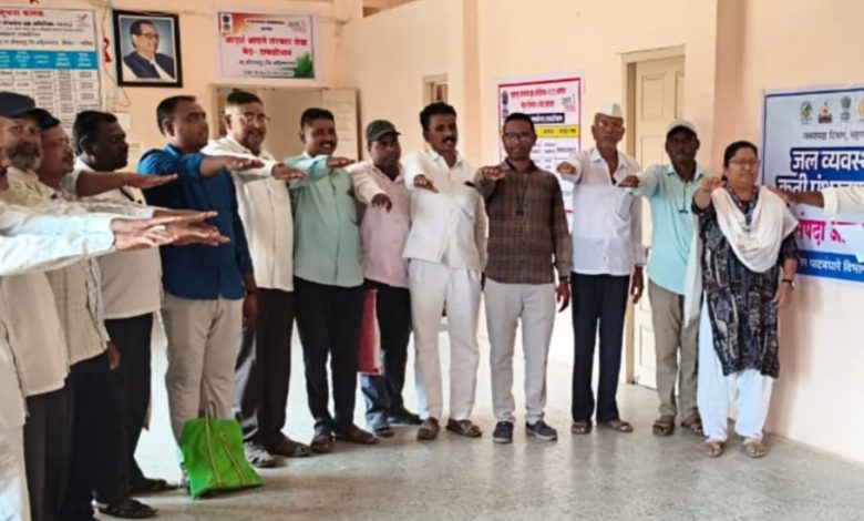 यावेळी पाणी बचतीची शपथ देवून जलव्यवस्थापना बाबत मार्गदर्शन करण्यात आले. जलसंपदा विभागाकडून सर्वत्र जलव्यवस्थापन पंधरवाडा साजरा केला जात आहे. येथील ग्रामपंचायतीमध्ये या कार्यक्रमाचे आयोजन करण्यात आले होते. यावेळी जलसंपदाच्या श्रीमती गायकवाड यांनी उपस्थितांना मार्गदर्शन केले.