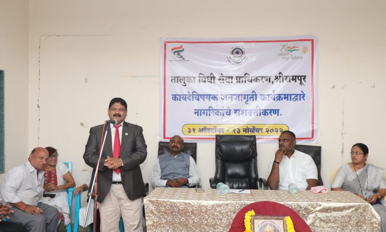 आपल्यावर अन्याय झाला असेल तर न्यायालयात जरुर या न्याय निश्चितच मिळेल परंतु कुणाला जाणुन बुजुन मानसिक, आर्थिक त्रास देण्याच्या उद्देशाने न्यायालयात खटला दाखल करु नका असे उद़्गार जिल्हा न्यायाधीश अभिजीत नांदगावकर यांनी काढले भारतीय स्वातंत्र्याच्या अमृत महोत्सव व बेलापुर ग्रामपंचायतीचा शतक महोत्सव याचे औचित्य साधुन तालुका विधी सेवा समीती श्रीरामपुर व वकील संघ श्रीरामपुर यांच्या संयुक्त विद्यमाने नागरीकांची कायदे विषयक जनजागृती या विषयावर आयोजित समाज प्रबोधन कार्यक्रमात अध्यक्षस्थानावरुन ते बोलत होते या वेळी व्ही बी कांबळे सह दिवाणी न्यायाधीश न्यायाधीश एन के खराडे २ रे सह दिवाणी न्यायाधीश श्रीरामपुर न्यायाधीश श्रीमती पी ए पटेल ४ थे सह दिवाणी न्यायाधीश मा जि प सदस्य शरद नवले प्रमुख अतिथी उपस्थित होते जिल्हा न्यायाधीश अभिजीत नांदगावकर पुढे म्हणाले की आपल्या अधिकारा करीता आपण भांडत असतो त्याच वेळी आपल्याला आपल्या जबाबदारीचीही जाणीव असली पाहीजे एखादे कृत्य दुसऱ्याने करु नये असे वाटते तो कायदा त्यामुळे आपण आपल्या बुध्दीला पटेल अशा कायद्याचे पालन करा असेही ते म्हणाले २ रे सह दिवाणी न्यायाधीश एन के खराडे म्हणाले की जमीनी बाबत सर्वात जास्त वाद न्यायालयात येत असतात वारस हक्काने मिळणाऱ्या संपत्तीत आता मुला बरोबरीने मुलीचाही हिस्सा आहे परंतु मुलीच्या लग्नाकरीता कर्ज घेतले असेल तर ती ही जबाबदारी स्विकारणे आपले कर्तव्य आहे हे कायद्यानेच बंधन घालुन दिले आहे अँड मनिषा वर्मा यांनी महीला विषयक कायदे व त्याची सविस्तर माहीती दिली अन कायद्याने दिलेल्या अधिकाराचा दुरुपयोग करु नका असेही त्या म्हणाल्या अँड विजयराव साळूंके यांनी आपापसात झालेले वाद मिटविण्यासाठी मध्यस्थाची भुमीका महत्वाची असुन समाजातील जेष्ठ नागरीकांनी पुढाकार घेवुन वाद कसे मिटविले जातील या करीति प्रयत्न करावे असेही ते म्हणाले या वेळी ४ थे सह दिवाणी न्यायाधीश श्रीमती पी ए पटेल यांनीही संपत्ती बाबतचे अधिकार या बाबत माहीती दिली या वेळी वकील संघाचे अध्यक्ष अँड व्ही एच शेळके वकील संघाचे खजिनदार अँड जिवन पांडे अँड सुनिल शेळके अँड जगन्नाथ राठी सहाय्यक पोलीस निरीक्षक जिवन बोरसे अँड एन जी खंडागळे अँड एस आर बिहाणी अँड एम डी आढाव पत्रकार देविदास देसाई दिलीप दायमा किशोर काळे बाबुलाल शेख सुभाष राशिनकर शफीक बागवान ग्रामविकास अधिकारी राजेश तगरे हवालदार अतुल लोटके गणेश भिंगारदे उपेंद्र कुलकर्णी आदिसह ग्रामस्थ उपस्थित होते प्रास्ताविक अँड सुनिल शेळके यांनी केले कार्यक्रमाचे सूत्रसंचलन पत्रकार देविदास देसाई यांनी केले तर शरद नवले यांनी आभार मानले