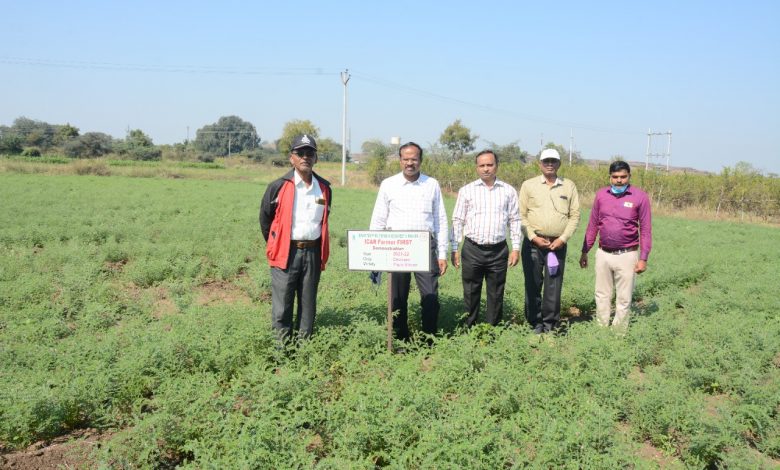 महात्मा फुले कृषि विद्यापीठ राबवत असलेल्या भारतीय कृषि अनुसंधान परिषद शेतकरी प्रथम प्रकल्पांतर्गत रब्बी ज्वारी व हरभरा या पिकांची पीक प्रात्यक्षिके समाधानकारक आहेत. या प्रकल्पांतर्गत रब्बी हंगामात रब्बी ज्वारी उत्पादन तंत्रज्ञान आणि हरभरा उत्पादन तंत्रज्ञानाची पीक प्रात्यक्षिके चिंचविहिरे, कणगर, तांभेरे आणि कानडगाव या ठिकाणी घेण्यात आली आहेत. महात्मा फुले कृषि विद्यापीठाने प्रसारित केलेले फुले सुचित्रा व फुले रेवती हे रब्बी ज्वारी पिकाचे वाण तसेच हरभरा पिकाचे फुले विक्रम व फुले विक्रांत या वाणांसह शिफारशीत तंत्रज्ञानाचे अवलंबन या पीक प्रात्यक्षिकांमध्ये करण्यात आले आहे. या प्रात्यक्षिकांमध्ये सहभागी झालेल्या शेतकर्यांना हंगामपूर्व प्रशिक्षण कार्यक्रमात विद्यापीठ तज्ञाद्वारे प्रशिक्षित करण्यात आले. याबरोबर शेतकर्यांना वेळोवेळी मार्गदर्शन करण्यात येत आहे. कुलगुरु डॉ. पी.जी. पाटील आणि संशोधन व विस्तार शिक्षण संचालक डॉ. शरद गडाख यांच्या मार्गदर्शनाखाली प्रकल्पाचे प्रमुख समन्वयक डॉ. पंडित खर्डे व त्यांचे सहकारी सहसमन्वयक हा प्रकल्प या चार गावांमध्ये राबवत आहे. नुकतेच विद्यापीठाचे कडधान्य प्रकल्पाचे प्रमुख शास्त्रज्ञ डॉ. नंदकुमार कुटे, वरिष्ठ ज्वारी पैदासकार डॉ. दिपक दुधाडे आणि प्रमुख समन्वयक डॉ. पंडित खर्डे यांनी या पीक प्रात्यक्षिकांची पहाणी करुन शेतकर्यांना मार्गदर्शन केले. या चमुने चिंचविहिरे येथील सुनिल गाडे व गोरक्षनाथ शिंदे यांच्या रब्बी ज्वारी व हरभरा पीक प्रात्यक्षिकांची पहाणी केली. तसेच कणगर येथील प्रविन गाडे, तांभेरे येथील मेजर ताराचंद गागरे, आदिनाथ गागरे, सोन्याबापू मुसमाडे आणि कानडगाव येथील मधुकर गागरे यांच्या पीक प्रात्यक्षिकांना भेटी दिल्या. या रब्बी पीक प्रात्यक्षिकांबद्दल शेतकर्यांनी समाधान व्यक्त केले. या भेटीचे नियोजन संशोधन सहयोगी विजय शेडगे आणि प्रक्षेत्र सहाय्यक किरण मगर आणि राहुल कोर्हाळे यांनी केले.
