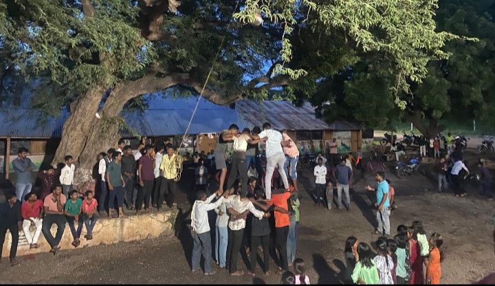 ज्येष्ठ नागरिक संभाजी गायकवाड यांच्या हस्ते नारळ फोडून दहीहंडीची सुरुवात करण्यात आली,गावातील सर्व बाल गोपालांनी ,तसेच गावातील ग्रामस्थांनी व जय श्रीराम फाउंडेशन चे सर्व स्वयंसेवकांनी या मधे सहभागी झाले होते, मोठ्या संख्येने ग्रामस्थ व गोविंदा उपस्थित होते,