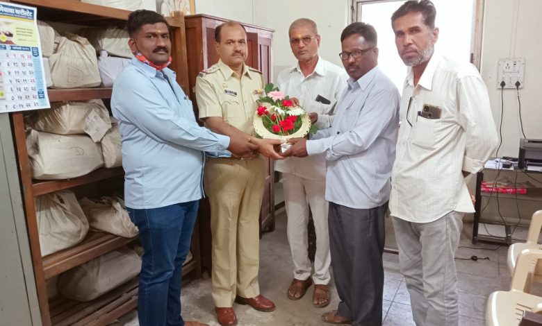 श्रीरामपुर तालुका पोलिस ठाण्यात नव्याने रुजु झालेले पो.नि. मच्छींद्र खाडे यांचा टाकळीभान पञकार सेवा संस्थेच्या वतीने शुभेच्छा देवुन सत्कार करण्यात आला. त्याप्रसंगी पञकार सेवा संस्थेचे अध्यक्ष चंद्रकांत लांडगे, ज्येष्ठ पत्रकार दिलिप लोखंडे, रामेश्वर आरगडे, संदिप बोडखे, सचिव बापुसाहेब नवले. आदी उपस्थित होते