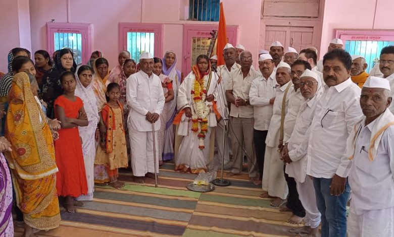 टाकळीभान— येथील ह. भ. प. संगिताताई शेजूळ महाराज यांनी पायी नर्मदा परिक्रमा पूर्ण केल्या बद्दल