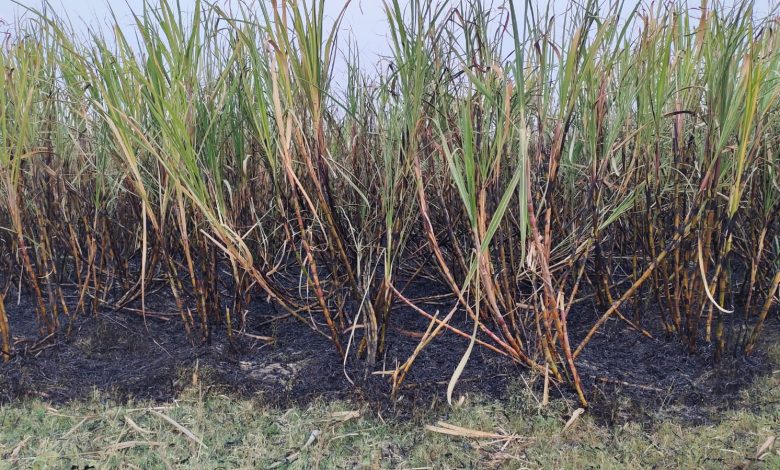 शनि शिंगणापूरात शाॉट सर्किट मुळे पाच एकर ऊस जळुन खाक लाखोंचे नुकसान.
