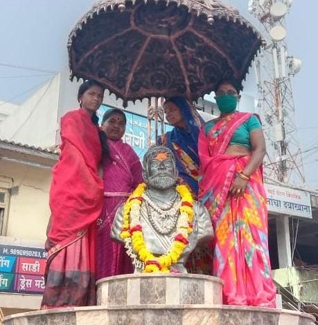 महीला दिनाचे औचित्य साधत महीला ग्रामपंचायत कर्मचाऱ्यांच्या हस्ते छत्रपती शिवाजी महाराजांच्या पुतळ्यास अभिवाद