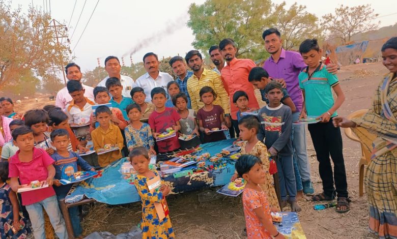उदयन गडाख यांच्या वाढदिवसा निमित्त उसतोड कामगाराच्या मुलांना शालेय साहित्य व खाऊ वाटट.