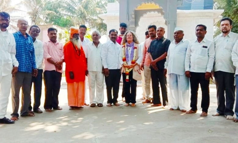 कॅरीन फ्रुट मायर यांचे स्वागत करून त्यांचा सत्कार केला. यावेळी राजेंद्र कोकणे, पाराजी पटारे, गजानन कोकणे, विशाल पटारे, भाऊ कोकणे, मधुकर गायकवाड, आप्पासाहेब रणनवरे, आर आर शेख, आबासाहेब रणनवरे, बंडू कोकणे, पोपट पटारे, बंडू वेताळ, विजय नारळे, दादासाहेब पटारे, भाऊसाहेब कोकणे, मंदिराचे पुजारी ओंकार जंगम आदी उपस्थित होते.