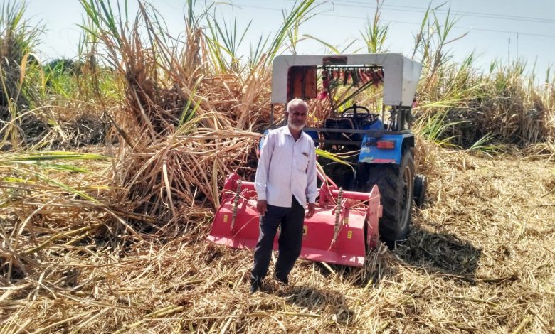 निमगाव गांगर्डा येथील शेतकऱ्याने ऊसात फिरविला ट्रॅक्टरने रोटा