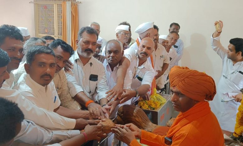 गुरुवर्य महंत रामगिरीजी महाराज यांच्या हस्ते शिलेगाव सोसायटीच्या प्रचार नारळाचा शुभारंभ