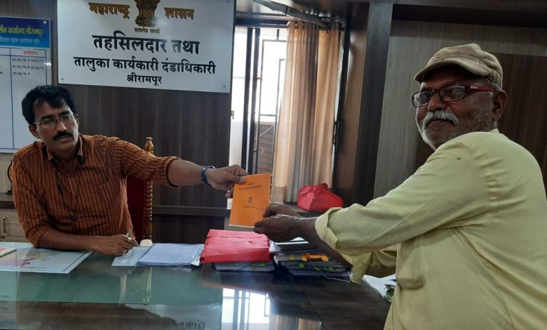श्री गुरु माऊली सेवा भावी संस्थेच्या वृध्दाश्रमास तहसीलदार पाटील यांच्या सहकार्याने मिळाले रेशनकार्ड