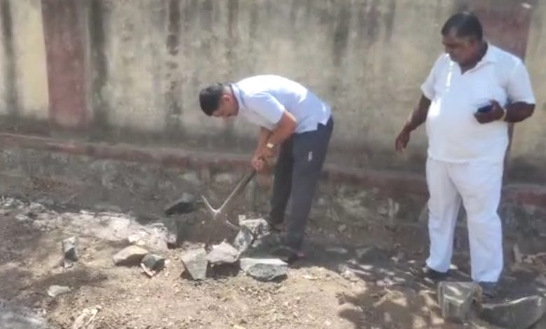 उपसरपंच कानोबा खंडागळे यांनी कामाची पाहणी करून निकृष्ट दर्जाचे कामचा पाया टिकावाने खांदुन काढला