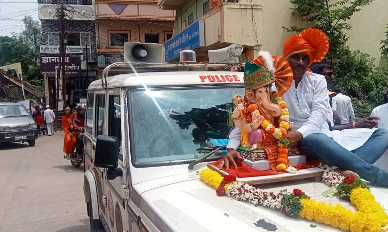 आळंदी देवाची येथील आळंदी पोलिसांच्या गणपती विसर्जनाची मिरवणूक आळंदीत आकर्षणाची ठरली .