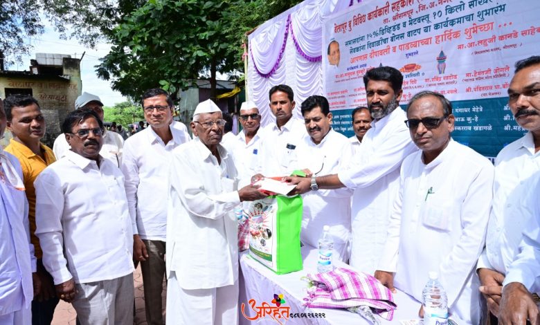 श्रीरामपुर तालुक्यात बेलापुर विविध कार्यकारी सेवा सोसायटी ही जिल्ह्यात अव्वल नंबरची सोसायटी ठरली असुन या संस्थेच्या संचालक मंडळाने १५%लाभांश १०किलो साखर दिवाळीचा फराळ देण्याचा निर्णय घेतला असुन सभासद हीत जोपासतानाच संस्थेचा विकास साधण्याचाही प्रयत्न केला आहे असे गौरोद़्गार आमदार लहु कानडे यांनी काढले दिपावली निमित्त बेलापुर विविध कार्यकारी सेवा संस्थेच्या सभासदांना १५ टक्के डीव्हीडंट १० किलो साखर तसेच फराळ वाटप व सेवकांना बोनस वाटपाच्या कार्यक्रमात अध्यक्षपदावरुन ते बोलत होते या वेळी प्रमुख अतिथी म्हणून जिल्हा बँकेचे संचालक करण ससाणे काँग्रेसचे तालुकाध्यक्ष अरुण पा नाईक भगवान सोनवणे अजय डाकले कै मुरलीधर खटोड पतसंस्थेचे चेअरमन रविंद्र खटोड भरत साळूंके राजेश खटोड दत्ता कुऱ्हे आदि मान्यवर उपस्थित होते आमदार लहु कानडे पुढे म्हणाले की सध्याच्या शासनाने सर्वांनाच गाजर दाखविण्याचे काम केले आहे महाविकास अघाडी सरकारने अनेक समाजोपयोगी निर्णय घेतले होते त्यांना तिलांजली देण्याचे काम या शासनाने सुरु केले आहे अतिवृष्टीमुळे शेतकरी भुईसपाट झाला आहे त्यांना सरसकट नुकसान भरपाई दिली पाहीजे शेती कायमच तोट्यात चालल्यामुळे शेतकरी हतबल झालेला आहे अशा शेतकऱ्यांना आधार देण्याचे काम जिल्हा बँकेने हाती घेतले आहे शेतकऱ्यांना विज व पाणी हे महत्वाचे आहे हे लक्षात घेवुन शेतकऱ्यांना विंजेसंदर्भात येणाऱ्या अडचणीचा अभ्यास केला असता असे लक्षात आले की श्रीरामपुर तालुक्यात उच्च दाबाने विज पुरवठा व्हावा अशी यंत्रणाच अस्तित्वात नाही त्यामुळे तालुक्यात हाय पाँवर सब स्टेशन मंजुर करण्यात आले असुन लवकरच त्याचे काम सुरु होणार आहे ,तालुक्याचा शाश्वत स्वरुपात विकास व्हावा हे आपले स्वप्न आहे श्रीरामपुर ते देवळाली या रस्ता चौपदरीकरणाचे काम हाती घेण्यात आले असुन चांगल्या कामांना खिळ घालणाऱ्या अपप्रवृत्ती विरोधात भक्कमपणे उभे राहीले पाहीजे असेही ते म्हणाले जिल्हा बँकेचे संचालक करण ससाणे म्हणाले की जिल्हा बँकेच्या माध्यमातून शेतकऱ्यांना सौर पंप देण्यासाठी कर्ज योजना सुरु करण्यात आली असुन त्याचा लाभ घ्यावा असे अवाहन ससाणे यांनी केले या वेळी बोलताना संस्थेचे चेअरमन सुधीर नवले म्हणाले की केवळ कर्ज देणे व वसुल करणे या वर अवलंबून न रहाता संस्थेने पेट्रोल पंप स्वस्त धान्य दुकान खत डेपो असे दुय्यम व्यवसाय सुरु केल्यामुळे संस्था नफ्यात आलेली आहे सन २०१४ पासुन सभासदांना लाभांश देण्याचे काम संस्था करत आहे १५ वर्षापासुन संस्थेचा कारभार काटकसरीने केल्यामुळे सभासदांनी पुन्हा एकदा संस्था आमच्या ताब्यात दिली आहे त्यांच्या विश्वासाला तडा जावु दिला जाणार 