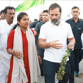 राहुल गांधी यांच्या भारत जोडो यात्रेने भारतच नव्हे तर संपूर्ण जगाचे लक्ष वेधून घेतले आहे. सर्वसामान्य जनतेचे प्रश्न समजून घ्यावेत आणि सर्व जाती-धर्मांमध्ये भाईचारा निर्माण व्हावा यासाठी राहुल गांधी यांनी भारत जोडो यात्रेला सुरुवात केली . ही यात्रा महाराष्ट्रात आल्यानंतर महाराष्ट्रातील सर्वसामान्य शेतकऱ्यांचे जीवन मरणाचे प्रश्न राहुल गांधी यांना समजावेत यासाठी स्वाभिमानी शेतकरी संघटनेच्या युवती आघाडीच्या प्रदेशाध्यक्ष पूजाताई मोरे यांनी कळमनुरी येथे राहुल गांधी यांची भेट घेतली.
