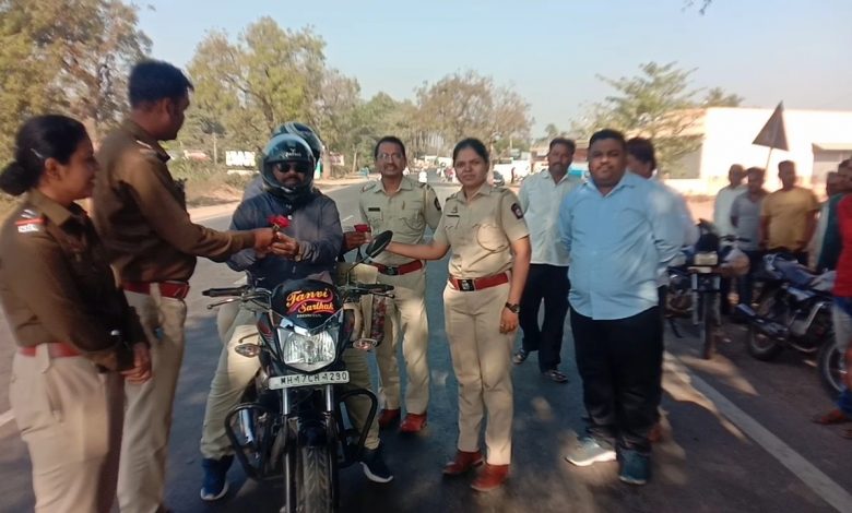 टाकळीभान प्रतिनिधी : श्रीरामपूर नेवासा रोड राज्य मार्ग क्रमांक 44 वर टाकळीभान येथे श्रीरामपूर मोटार वाहन निरीक्षक धीरज कुमार भामरे व सर्व त्यांची टीम यांनी रस्ता सुरक्षा सप्ताह 11 ते 17 जानेवारी 2023 यानिमित्त या मार्गावर वाहतुकीचे नियम पाळणाऱ्यांचे गुलाब पुष्प देऊन स्वागत केले. तसेच यावेळी उपस्थित वाहन चालक व ग्रामस्थांना मार्गदर्शन केले. यावेळेस भामरे म्हणाले की मोटार वाहन चालकांनी वाहतुकीचे नियम पाळणे गरजेचे आहे, टू व्हीलर वाहन चालकांनी हेल्मेट सक्तीने घालावे, तसेच फोर व्हीलर वाहन चालकांनी सीट बेल्ट लावावा, यामुळे वाहन चालवत असताना अपघाता पासून आपले संरक्षण होते, तसेच रोडवर अपघात झाल्यानंतर मदत आपण केली पाहिजे, त्या संदर्भात सूचना देऊन बहुमोल मार्गदर्शन केले. याप्रसंगी सहाय्यक मोटार वाहन निरीक्षक अमोल सरकटे, शितल तळपे, मयुरी पंचमुख तसेच विष्णुपंत गर्जे आदी उपस्थित होते. या मार्गदर्शन प्रसंगी माजी उपसरपंच राजेंद्र कोकणे, बंडोपंत बोडखे, एसटीचे वाहक अमोल पटारे, दत्तात्रय मगर, बाबासाहेब तनपुरे, शरद लोखंडे,अशोक शेरकर, शंकर ननवरे सचिन बोडखे, बापूसाहेब शिंदे, मधुकर गायकवाड, वाहन चालक व ग्रामस्थ उपस्थित होते.