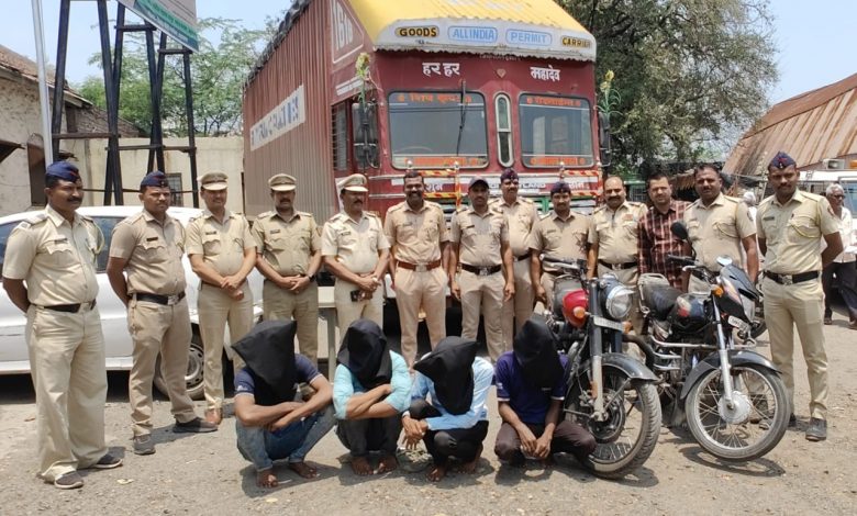 कंटेनर चोरणाऱ्या ऋषिकेश तांबे, विकास झिंजुर्डे, नितीन बोर्डे (रा. देसवंडी ),समीर शेख ( रा . पिंप्री अवघड ) व अरुण मोरे (रा . लोणी ) या आरोपींवर राहुरी पोलीस स्टेशन येथे गुन्हा दाखल करण्यात आला असून यातील अरुण मोरे हा फरार झाला आहे . तसेच या गुन्हात वापरण्यात आलेली बुलेट क्रमांक एम एच – १७ – सी टी – ४१८९ ही राहुरी पोलिसांनी ताब्यात घेतली आहे .