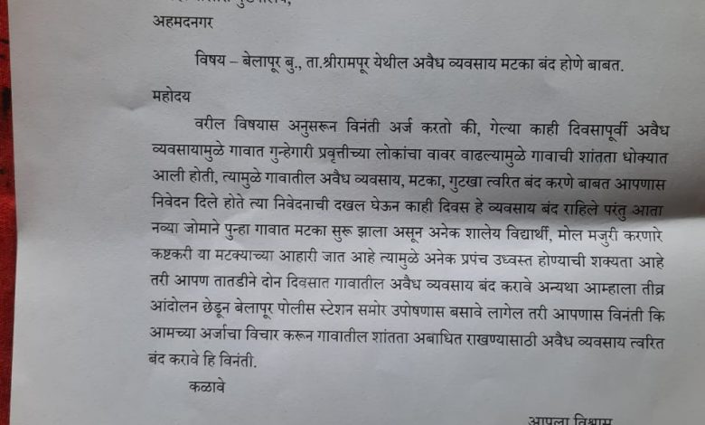 बेलापूरातील अधैव व्यवसाय तातडीने बंद करण्याची सरपंचासह ग्रामस्थांची मागणी