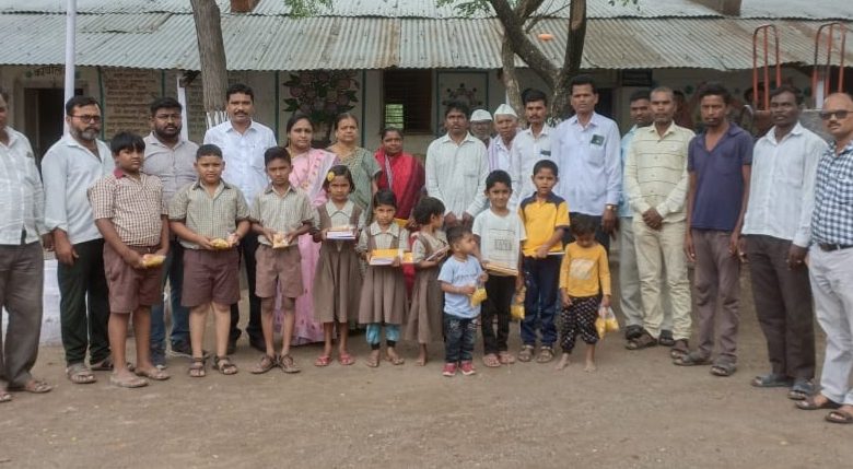 यावेळी गायकवाड यांचा शाळेच्या वतीने सपत्नीक सत्कार करण्यात आला.कार्यक्रमाचे प्रास्ताविक आनंद वाघ सर यांनी केले. गायकवाड यांच्या वतीने सर्व मुलांना शालेय वर्षाच्या सुरुवातीलाच मुलांना शालेय उपयुक्त ठरतील अशा वह्यांचे आणि खाऊचे वाटप करण्यात आले. कार्यक्रम प्रसंगी, सागर वाघमारे ,सरपंच श्रीपत गायकवाड,उपसरपंच गीताराम जाधव,बाळासाहेब कांगुने,शिवाजी शिरसाठ, काय्युंम भाई, आप्पासाहेब मा जाधव, सचिन रा गाडेकर, संजीव घोडे आदी सह ग्रामस्थ मोठ्या संख्येने उपस्थित होते.कार्यक्रमाचे सूत्रसंचालन शिक्षक संजय शिंदे सर यांनी केले तर आभार मुख्याध्यापिका महापुरे मॅडम यांनी मानले.