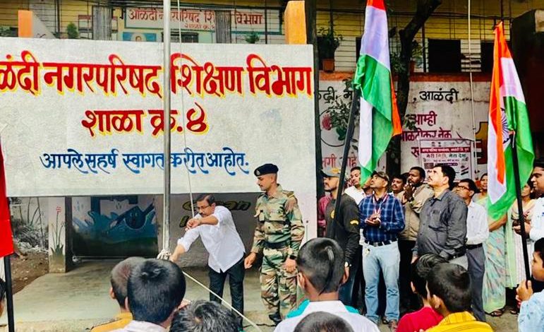 दिनांक १४ ऑगस्ट रोजी आळंदी नगरपरिषद शाळा क्रमांक ४ येथे सध्या मध्यप्रदेश येथे भारतीय सैन्य दलात कार्यरत असलेले सुदाम अशोक मुंडे(नाईक)व कार्तिक पितळे(सुभेदार) यांचा नगरपरिषदेच्या वतीने गौरव करण्यात आला.यावेळी त्यांच्या हस्ते शिलाफलकाचेअनावरण व झेंडा वंदन करण्यात आले.