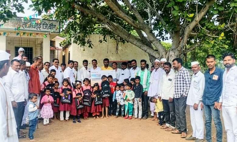 चिखली येथे जिल्हा परिषद शाळेत विद्यार्थ्यांना स्कुल बॅगचे वाटप