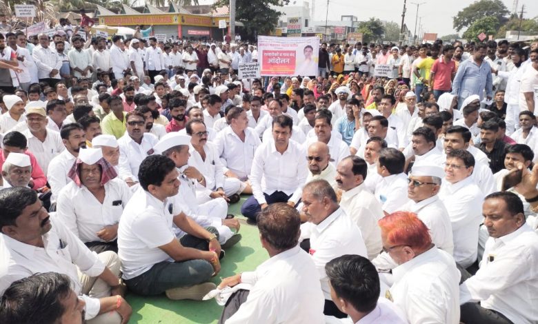रास्तारोको आंदोलन करण्यात आले याप्रसंगी भर उन्हात सकाळी 9.30ते दु 12.30 वाजेपर्यंत रास्तारोको आंदोलन