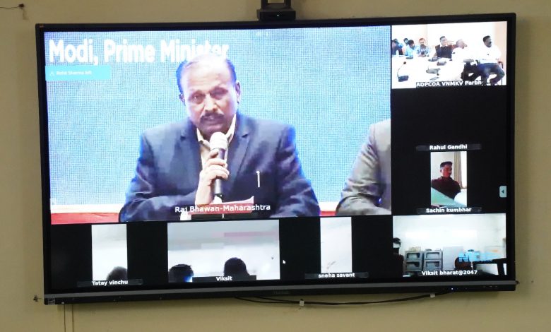 नवी दिल्ली येथे विकसीत भारत @1947 युवकांचा आवाज या उपक्रमाची सुरुवात देशाचे मा. पंत्रप्रधान श्री. नरेंद्र मोदी यांनी केली. सदर कार्यशाळा देशभरातील राजभवनांमध्ये आयोजीत करण्यात आली होती. महाराष्ट्र राज्याच्या राजभवनामध्ये महात्मा फुले कृषि विद्यापीठाचे कुलगुरु डॉ. पी.जी. पाटील, संशोधन संचालक डॉ. सुनील गोरंटीवार, विस्तार शिक्षण संचालक डॉ. सी.एस. पाटील, पुणे कृषि महाविद्यालयाचे सहयोगी अधिष्ठाता डॉ. सुनील मासाळकर, आंतरविद्याशाखा जलसिंचन व्यवस्थापन विभाग प्रमुख डॉ. महानंद माने, जैव तंत्रज्ञान विभागाचे सहयागी प्राध्यापक डॉ. पवन कुलवाल, अधिष्ठाता कार्यालयाचे डॉ. रवी आंधळे, पुणे कृषि महाविद्यालयातील पशु संवर्धन व दुग्धशास्त्र विभागातील डॉ. सोमनाथ माने आणि राज्यातील कृषि,अकृषि विद्यापीठांचे कुलगुरु उपस्थित होते. यावेळी मा. पंतप्रधान श्री. नरेंद्र मोदी यांनी ऑनलाईन मार्गदर्शन केले.
